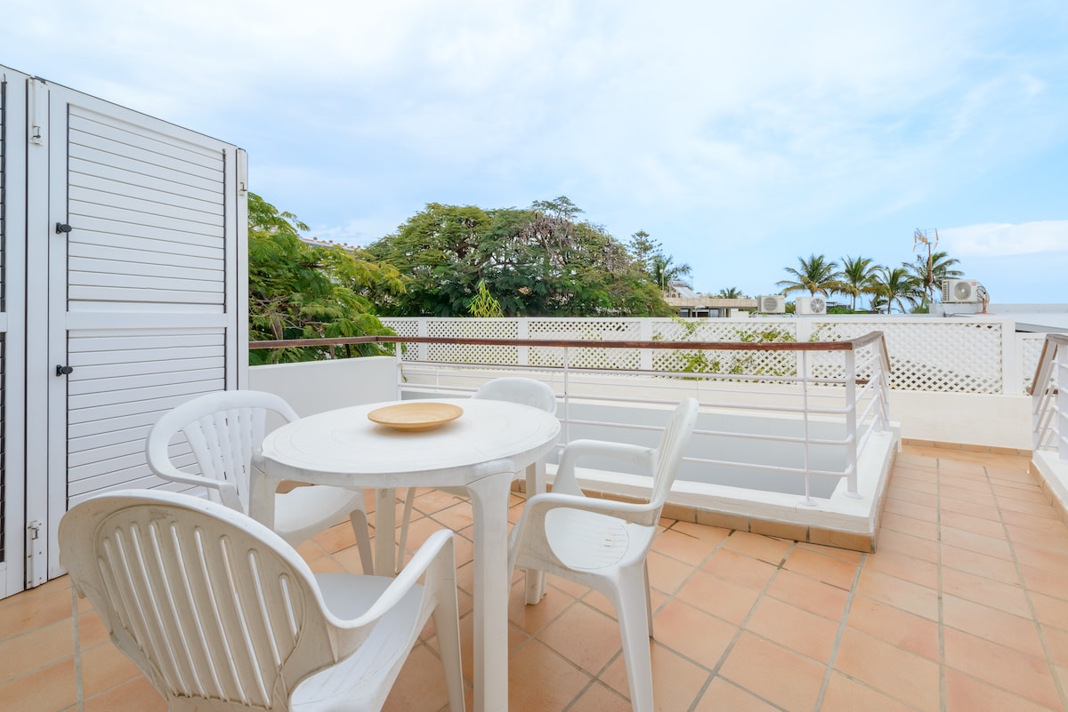 Beautiful apartment in a quiet area in Playa de Las Burras; near to the beach, good acceses, and parking around. Fully equipped, with american kitchen-living room, 2 bedrooms and terrace with seaviews . Close to the shopping centre with pharmacy, supermarkets and restaurants; public transport, gym and all the facilities. !5 minutes walking to Playa del Ingles and to the night lige