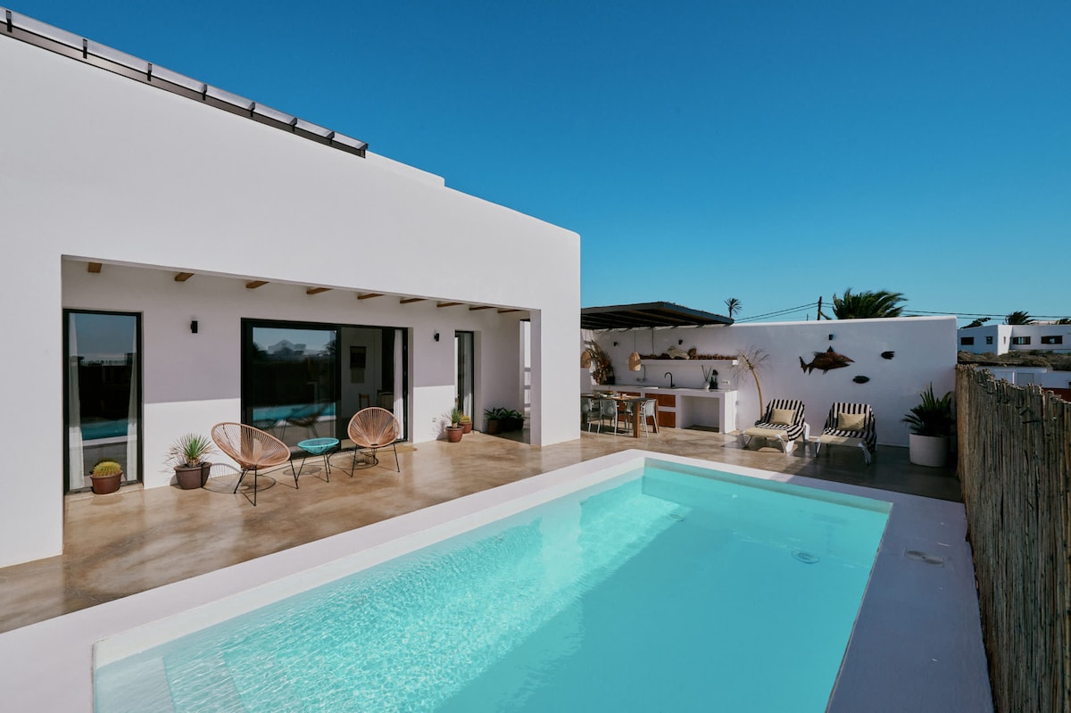 Relájese y desconecte en este alojamiento tranquilo y elegante. En villa Khaleesi podrá disfrutar de unas increíbles vacaciones. Cerca del Puerto Deportivo Marina Rubicón a tan sólo 5 min caminando donde podrá encontrar amplia variedad de restaurantes, tiendas y bares. Trasporte público cerca de la propiedad. Vistas al mar y a la montaña desde la planta superior de la vivienda.