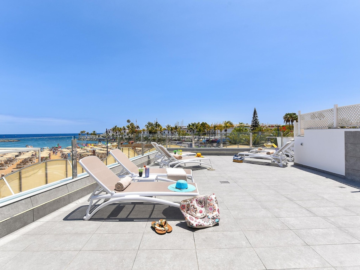 Apartment located in the south of Gran Canaria, just a few kilometers from tourist areas such as San Agustín, Playa del Ingles, and Maspalomas, on the seafront with direct access to the beach. The complex features carefully maintained gardens and spacious common areas, including a heated pool, a children's pool, and a sun terrace with direct sea views.