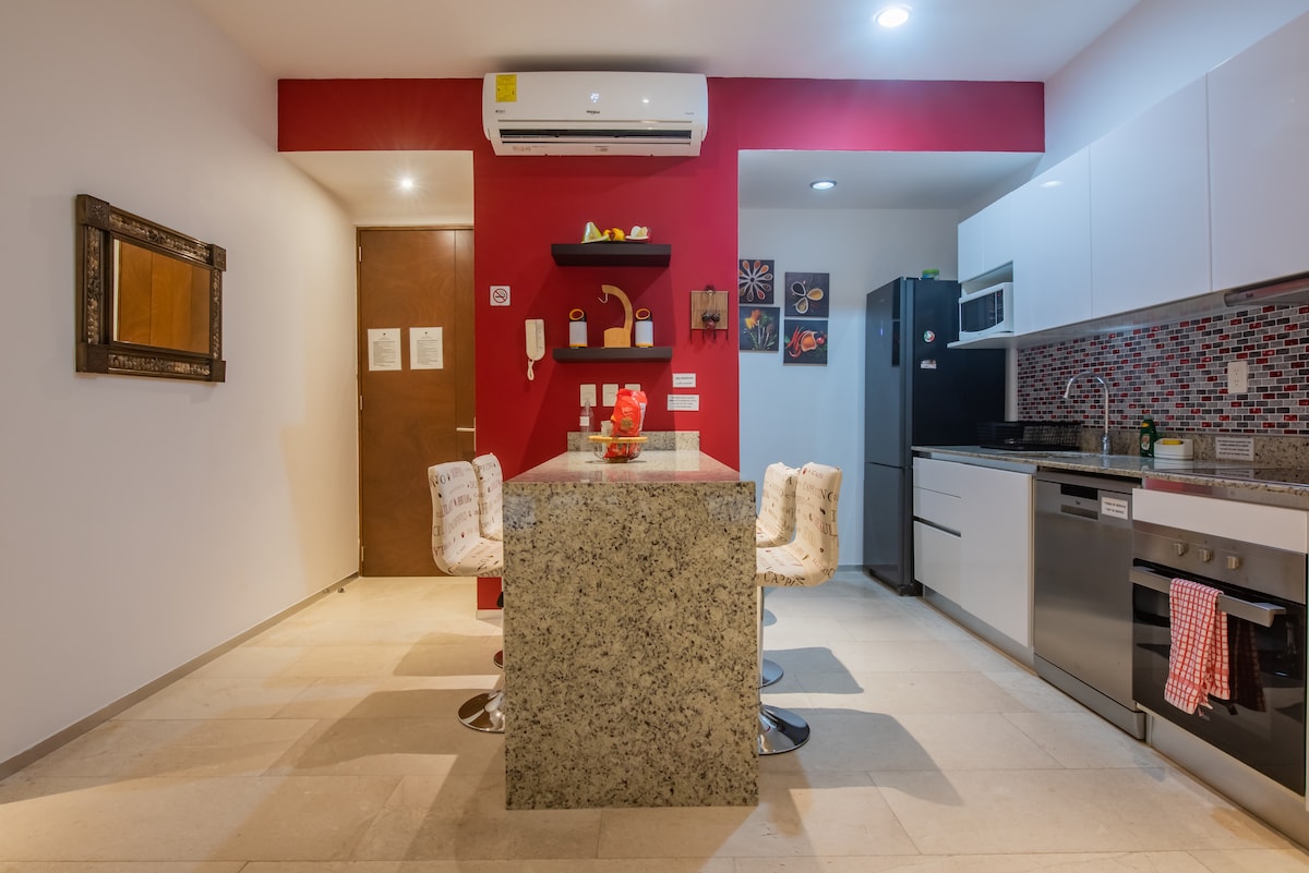 Very well located in the heart of PDC. Just few steps away from Quinta avenida perfect for shopping and dining , beach if you are planning to spend the day relaxing by the Carabbean sea and ferry for Cozumel sland for those who loves the thrill of scuba diving and water sports. The Studio is fine decorated with luxury details, stylishly designed open space area. Fully equipped kitchen for culinary enthusiasts. Clean and modern bathroom.Guest will have the maximum confort and maximum privacy.