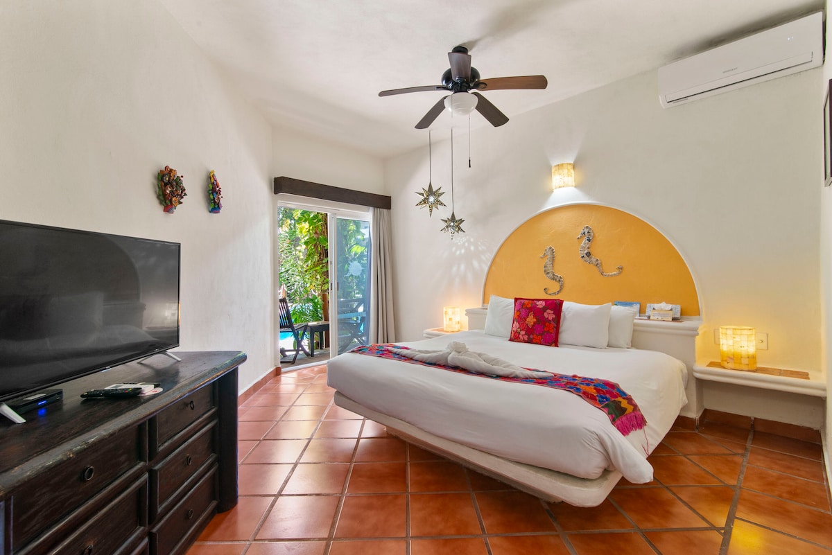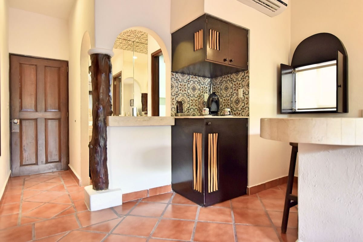 FREE ACCESS to BEACH CLUB. Spacious Suite King size bed and Sofa bed. 5 minutes walk to clean beaches . Soak in our rooftop infinity pool and watch the stars and the moon at night AC units Solar power. Modern Private bathroom ,Shampoo, Body wash, Conditioner, hand soap made of natural honey from Mayan village Kitchenette - Refrigerator, Microwave, Blender, Coffee maker, Toaster Cutlery. FREE ORGANIC COFFEE. FREE Direct connect & WIFI Laptop work station. FREE DAILY HOUSEKEEPING.