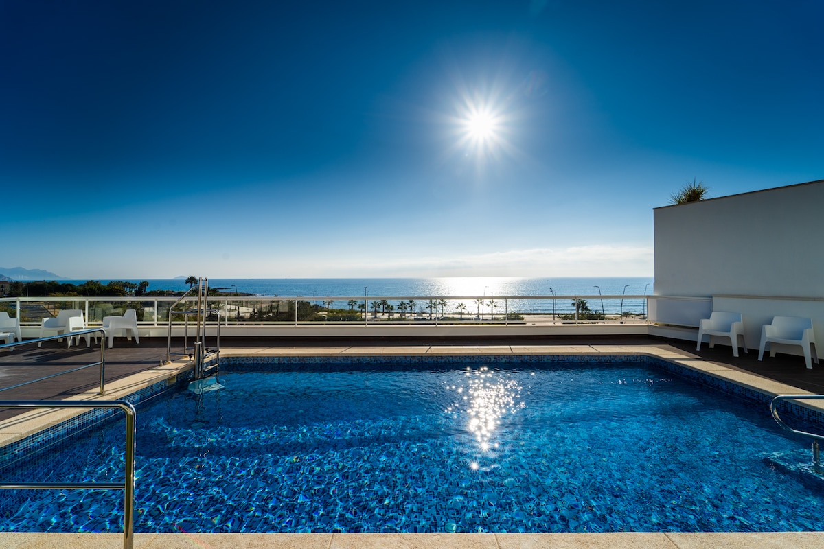 Elegant one-bedroom apartment with an en-suite bathroom and a living room with a kitchen for couples to enjoy. The apartments are brand new, feature modern decor, and are equipped with all the necessary amenities for a relaxing vacation. They also have a swimming pool with a sun terrace in the building and a relaxation area on the communal rooftop. Located in the heart of Alicante, a city with a wide range of gastronomic, cultural, leisure, and shopping options, and with white sandy beaches.