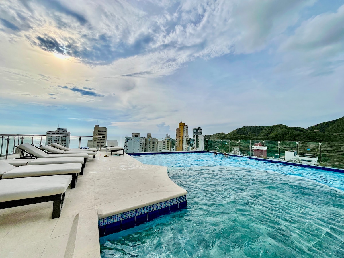 Hospédate en esta nueva suite, equipada con vista al mar y a las montañas. Ubicada en Pozos Colorados a 10 minutos del aeropuerto, el Hotel Porto Horizonte cuenta con las comodidades de un hotel de lujo. Disfruta de tres impresionantes piscinas, un moderno gimnasio y parqueadero privado. A 3 minutos del lobby te encontrarás con las tranquilas playas de Bello Horizonte. Ubicación ideal cerca al Centro Comercial Zazué, y de las tiendas D1 y Ara. No querrás irte de este lugar único.