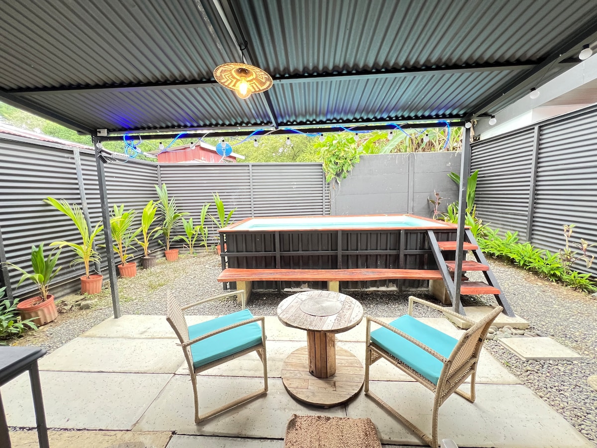 Disfruta de este alojamiento tranquilo y céntrico con piscina compartida. Cocina equipada con todo lo necesario para cortas y largas estancias. Internet de alta velocidad 100Mbs con zona de trabajo. Smart TV con cuenta de Netflix incluido. Parking privado cubierto con cámaras de vigilancia. Excelente ubicación céntrica y a poca distancia andando de tiendas y restaurantes. Está a 5 minutos en coche del Parque Nacional Marino Ballena, de la playa, y de rutas hacia la selva y las cascadas.