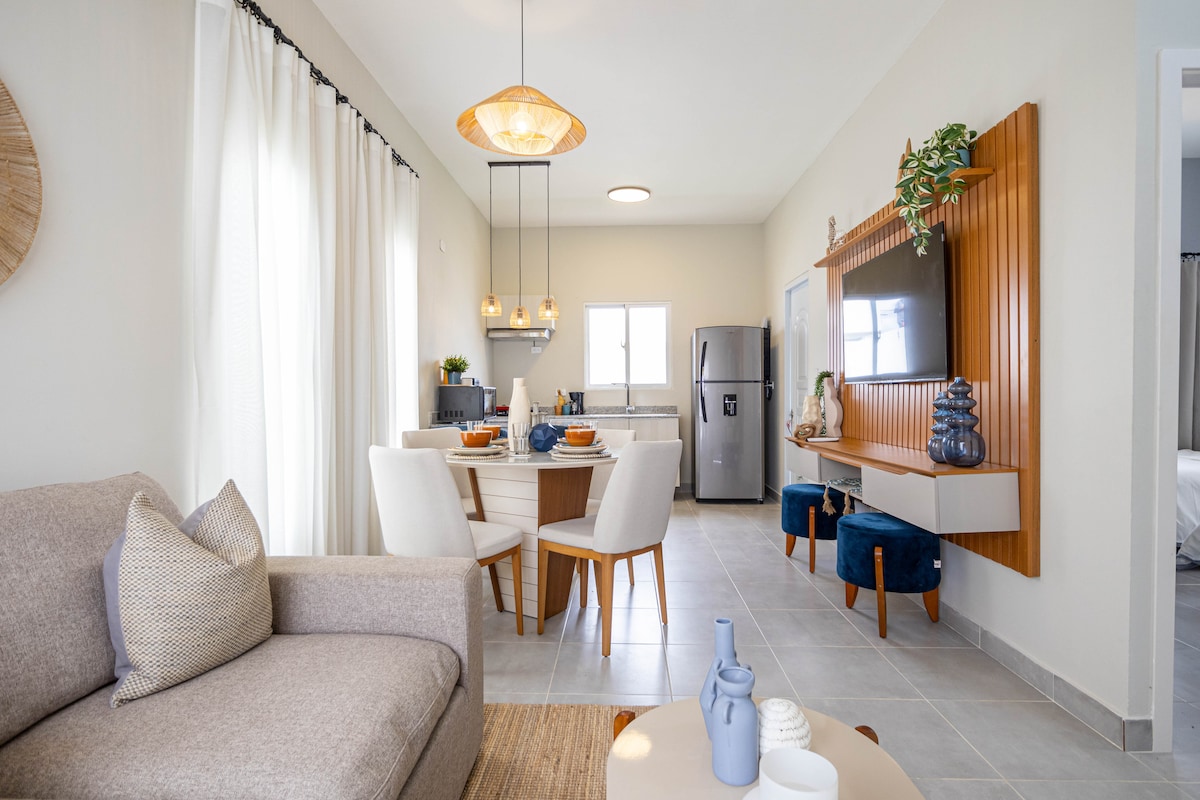 Espectacular nuevo Apartamento de lujo con piscina privada en la terraza, Justo a unos pasos de una de las principales playas de Bavaro. Un nuevo concepto de apartamentos en Punta Cana que te proporcionará confort, privacidad y seguridad para pasar tus vacaciones. Habitaciones amplias, cocina totalmente equipada, muebles de diseño, wifi de alta velocidad, check in online con la ultima tecnología. Sin duda una nueva experiencia para vivir Punta Cana de una forma diferente.
