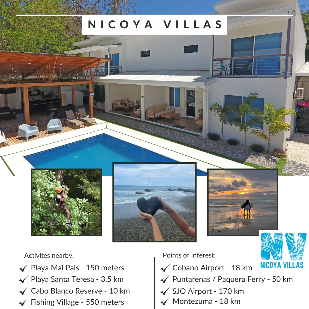 From light to layout and a well-thought-out design our family friendly setup emits a warm, inviting atmosphere. Relax in our expansive terrace or poolside in one of the hammocks under our tropical tiki hut. Walk to the stunning beaches of Mal Pais. A grocery store and microbrewery around the corner. Quiet location, yet 10 minutes away from the main bustle of town, where you'll find great dining options, cafes and fun nightlife. Near the best surf spots! Purified water on tap! WiFi 100Mbps