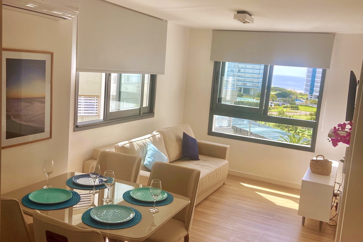Este alojamiento se encuentra ubicado en parada 4 de la Mansa, frente al Hotel y Casino Conrad, a 30 metros del mar. La mejor ubicación! Muy lindo decorado y completamente equipado. Cuenta con 1 dormitorio, baño completo, balcon, living comedor y cocina integrada de concepto abierto. El edificio cuenta con amenities de calidad: lavadero, Gimnasio, sauna seco, sauna húmedo, piscina exterior, sala de juegos, 2 barbacoas con amplia terraza con vista a la Bahia. Vigilancia las 24 hs