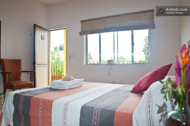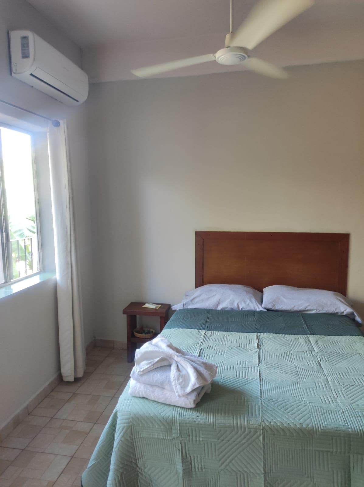 Enjoy staying in this private bedroom located in a penthouse, 300mb ethernet. The bedroom has two Queen bed that accommodates up to four persons. The third and fourth additional guests at extra charge of $ 8 usd p/night each. A/C in the room. You will enjoy staying with a local family. The bedroom is overlooking the mountain, only 4 minutes walk to the Malecon & Camarones beach . Enjoy a complementary coffee with Mexican Breakfast, provided Mon to Fri 8.30-10am