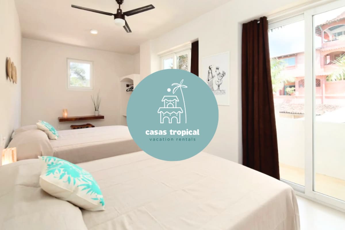 Enjoy a stylish experience at this centrally-located casa. The beachfront luxury condo is steps from Downtown Sayulita's restaurant and nightlife scene, yet sheltered from the noise - offering peaceful bliss within walking distance to anything you need. The 3 bedroom space offers 4 beds (2 Kings, 2 Doubles), a full kitchen, TV's, internet, 2 working stations w/ docking systems, luxury décor/finishes, a private balcony with breathtaking ocean views, etc. Common Space: Infinity pool, BBQ lounge