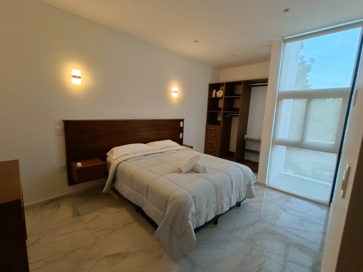Particular loft style apartment in the heart of Playa del Carmen. Only 3 blocks from the famous 5th Av., a few steps away from the beach. You will easily reach the main shops, groceries and restaurants. Bus station to the airport and Tulum 1 block away. Ocean view from the pool; you will enjoy some of the best amenities in town. Gym, 3 Jacuzzi, massage room and free parking inside the building, laundry. A confortable and elegant stay for your vacation in PdC. Personal Trainer and Yoga available.