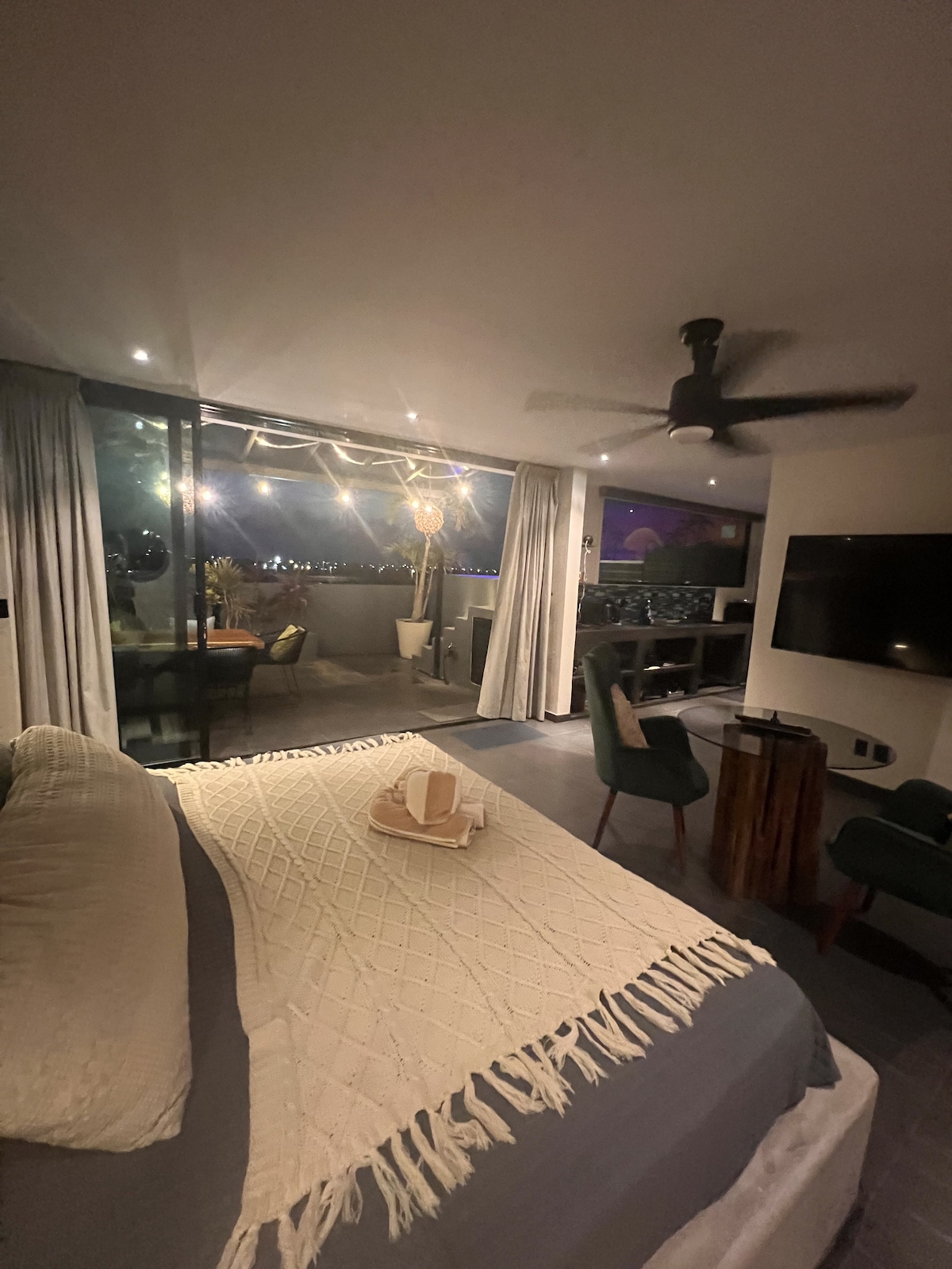 @thestrelitziaproject 🏆 The highest rated Airbnbs in Playa ⭐️ Fully en-suite smart studio room with kitchenette within a private home valued at $1m+ Wake up in a memory foam bed to views of a stunning natural cenote and infinity pool with your own private outdoor breakfast bar & terrace, 4K TV, Netflix included, Alexa-controlled lighting, iPad controls, Starlink WiFi, motorized blackout blinds, kitchenette, and more. We also offer car rental! Ask about potential construction before booking!