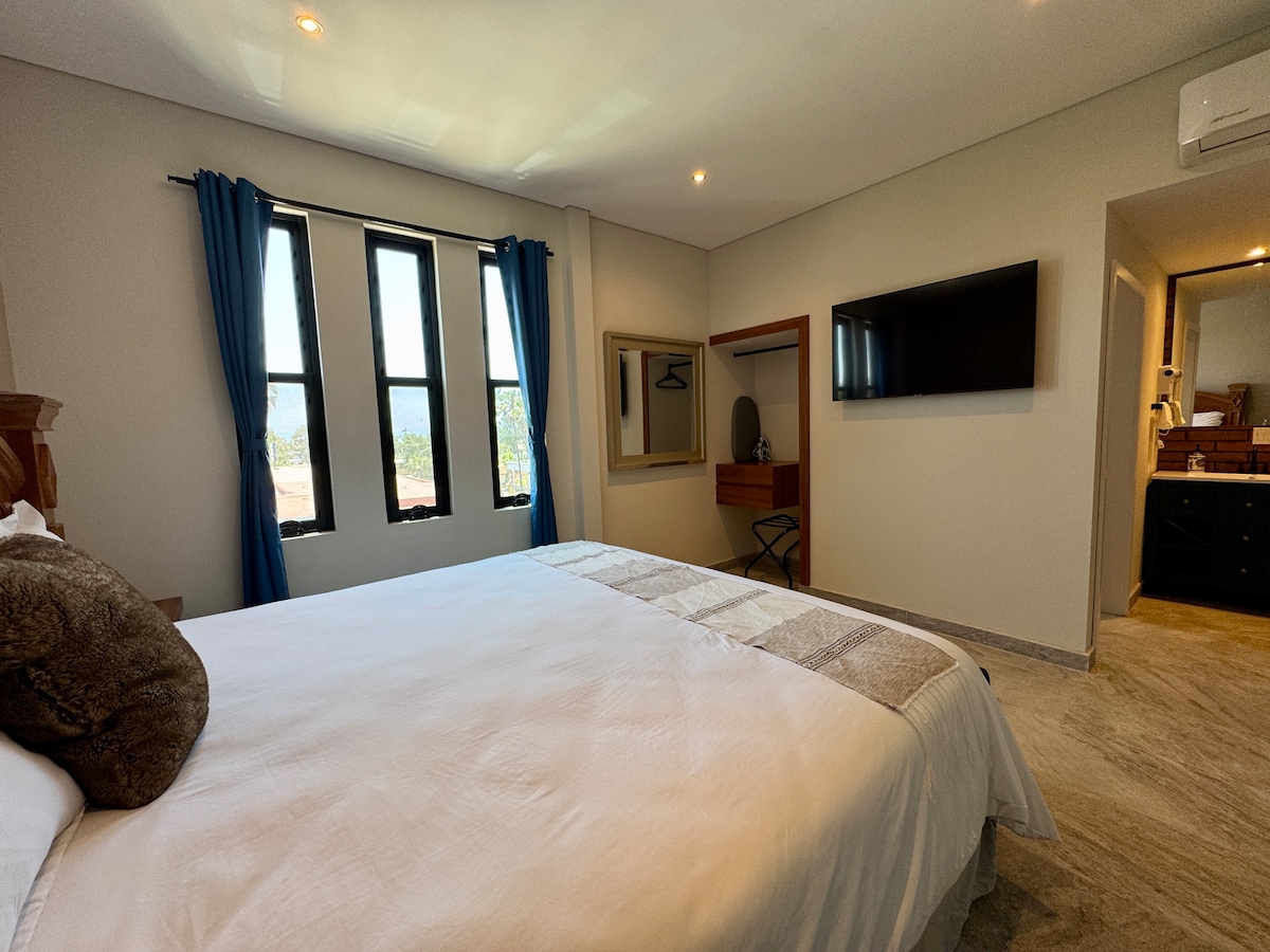 This one-of-a-kind casita has been fully remodeled in fine European Spanish charm darning a chic spacious kitchen, 3-piece bathroom, romantically draped canopy bed dressed in luxurious linens, a wood burning fireplace, quaint garden patio w/fountain & bistro table, a private roof top palapa w/ full pano ocean view & custom queen size bed swing and barstools w/dining perch, etc... all within a short distance of steps that lead down to our private beach for miles of walking when the tide is low!
