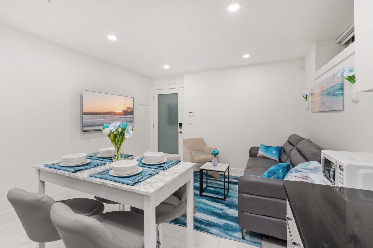 Snug 800-square-foot home on two levels with a dedicated outdoor patio. FIFA FAN SITE = 1km / 0.6 miles Downtown, Cruise Ships, Stadiums: 7 km/4 miles YVR Airport: 15 km/9 miles Grouse Mountain & Ski Hills: 17km/10 miles High-end amenities, an open-concept floor plan, and a shady outdoor courtyard are perfect for dining, working, and extended stays. Easy access to transit and bike routes, a short walk to parks, restaurants, shops, and fast WiFi.