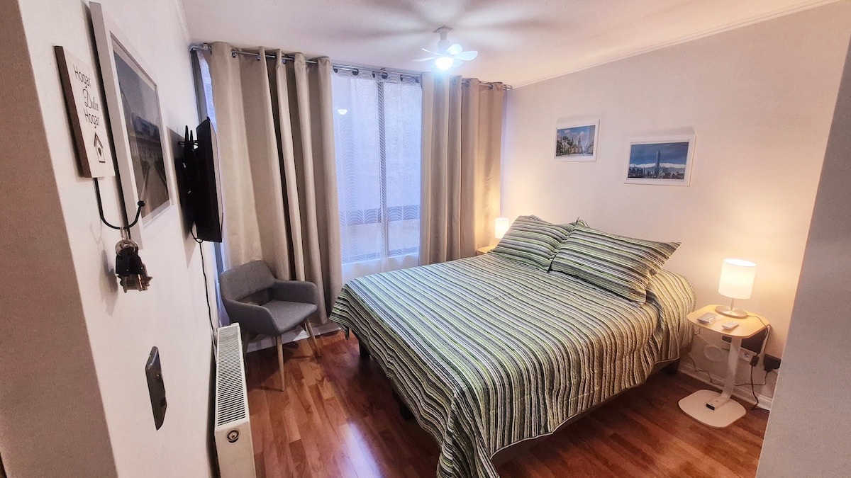 ** Excelente punto de partida para conocer la ciudad** Hola, soy Anita y te invito a hospedarte en un sector tranquilo y seguro, a pasos de exclusivos hoteles y los puntos más atractivos del sector como Plaza de Armas, Cerro Santa Lucía, Barrio Lastarria, museos, comercio y todas las atracciones imperdibles del casco antiguo. Cuenta con guardia 24 horas en control de acceso. Check in/out autónomo. Completamente equipado para disfrutar una maravillosa experiencia en Santiago.