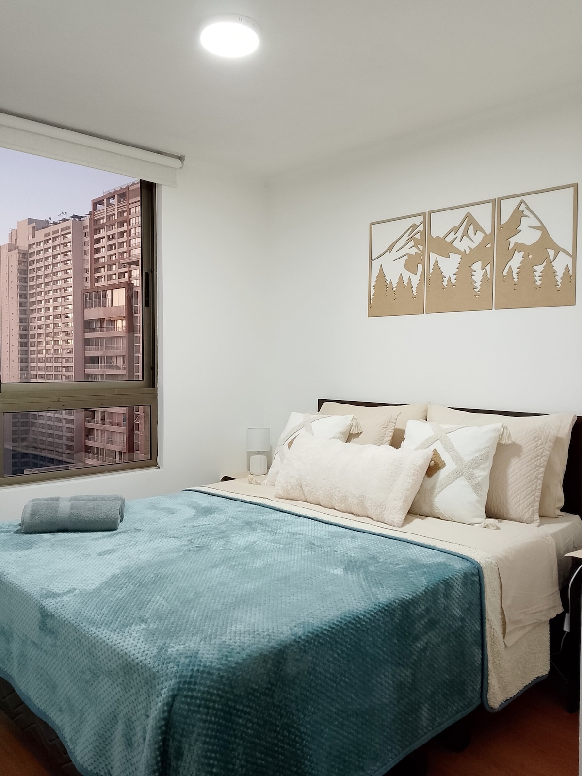 Desconectate de tus preocupaciones en este espacio sereno. Muy bien ubicado en el centro de Santiago, con conserjería las 24 horas, control de accesos, cercano a líneas de metro (1, 3 y 5), edificios gubernamentales y lugares de atracción turística. Apto para trabajar con Wifi de alta velocidad. Relájate en un ambiente grato, con TV Cable, aire acondicionado y todas las comodidades de una casa. Full Electric.