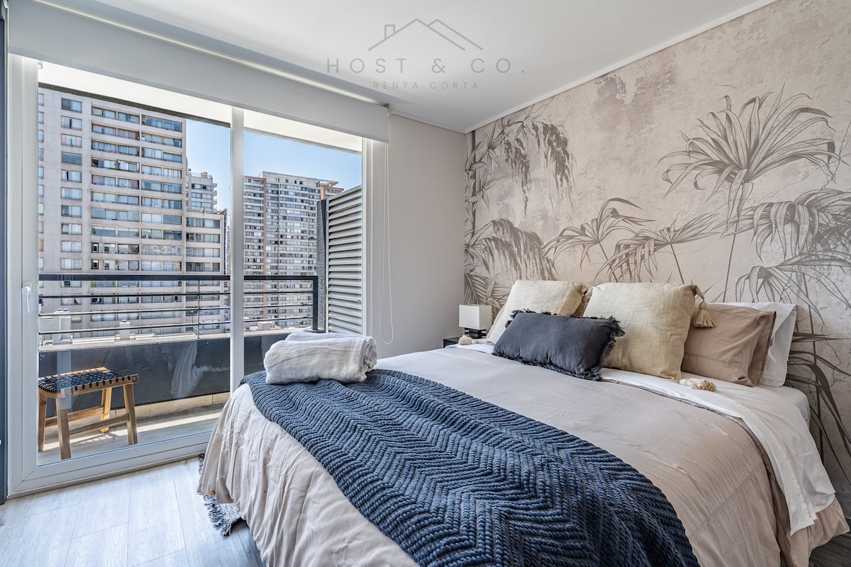 Acogedor departamento, totalmente amueblado y equipado dentro de un elegante y moderno edificio ubicado en el casco histórico de Santiago, que te harán sentir como en casa. Se encuentra emplazado en una ubicación privilegiada en pleno casco histórico de Santiago dentro de una calle tranquila. A pasos de los principales atractivos turísticos, supermercados, restaurantes, comercios y servicios con gran conectividad a líneas de Metro y Autopistas. Relájate en este espacio tan tranquilo y elegante.