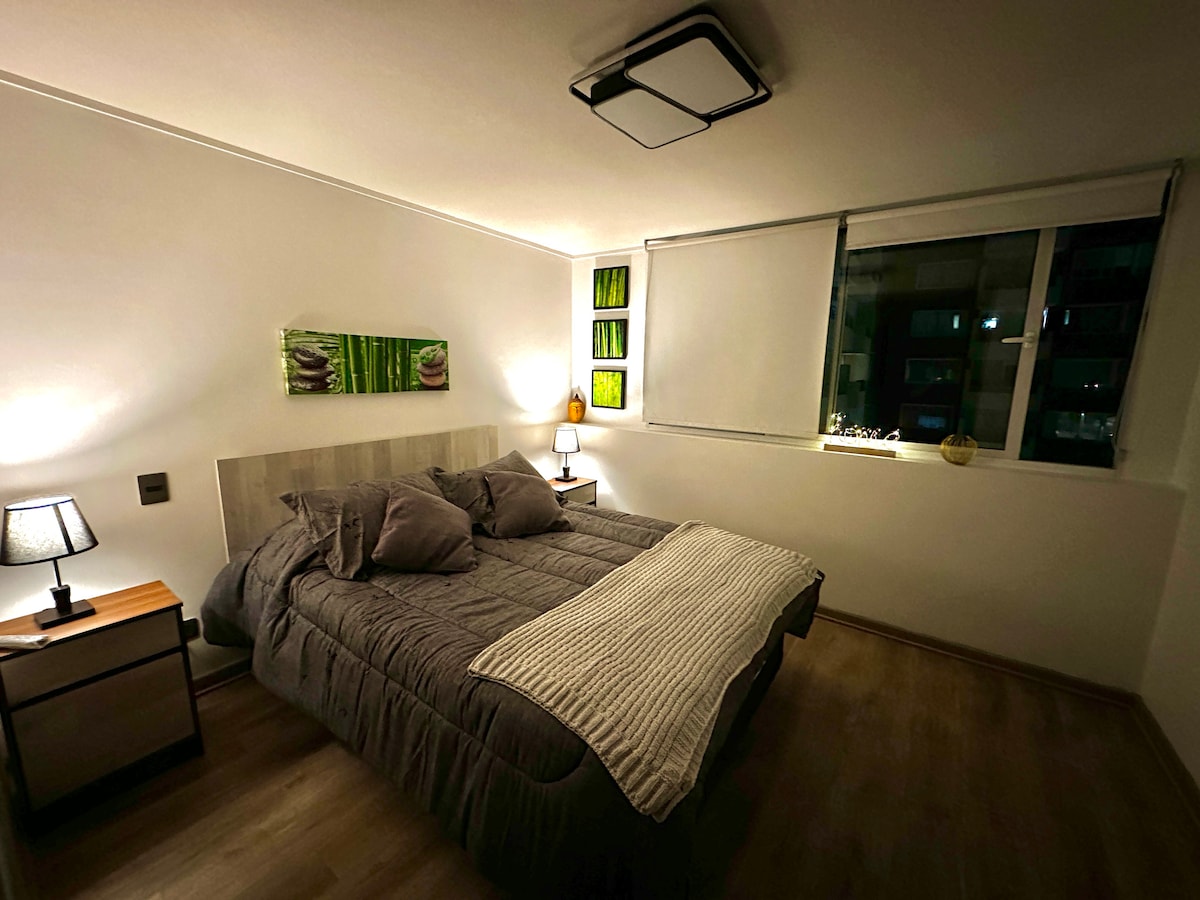 Welcome to the best location in Ñuñoa, Santiago! Experience the charm of Ñuñoa in our modern 1 bed, 1 bath apartment, near Plaza Ñuñoa. Whether you're here for business or leisure, you'll love the vibrant neighborhood filled with restaurants, shops, and transportation just steps away from your doorstep. Bright and Spacious Living Area, Fully Equipped Kitchen, Comfortable Bedroom, Sparkling Clean Bathroom, Private Balcony. Book now and experience the best of Ñuñoa in comfort and style!