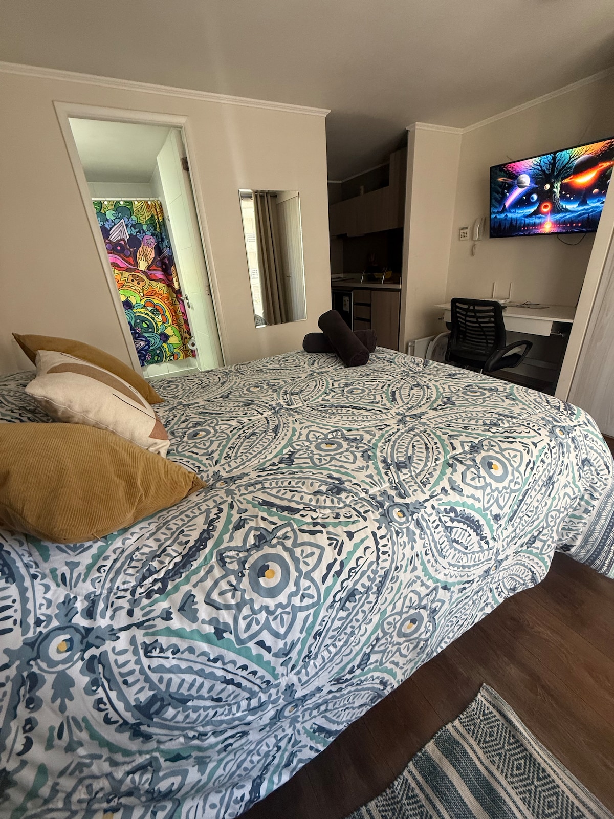 ¡Disfruta de una estancia inolvidable en nuestro hermoso departamento! Totalmente equipado, con Wi-Fi (perfecto para teletrabajo), cocina full equipada, habitación acogedora y estacionamiento privado dentro de las instalaciones. 📍 Ubicación: A 8 minutos caminando del metro Ñuble (línea 5 y línea 6). 🛏️ Capacidad: Hasta 2 personas ✨ Servicios: Wi-Fi, televisión, Netflix, ropa de cama, toallas, utensilios de cocina y más. ¡Tu hogar lejos de casa te espera!