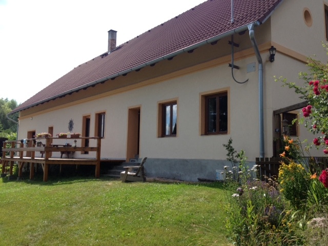 The cottage with a capacity of max. 14 people in the quiet village of Zhorec nearby Bezdruzice. The accommodation offers an equipped kitchen with a stove, two bathroom, two double rooms with the possibility of an extra bed, a family room for four people and a sleeping loft for another four people. The building includes a spacious garden and our farm pets. Driving distance to Marienbad and many other interesting places.