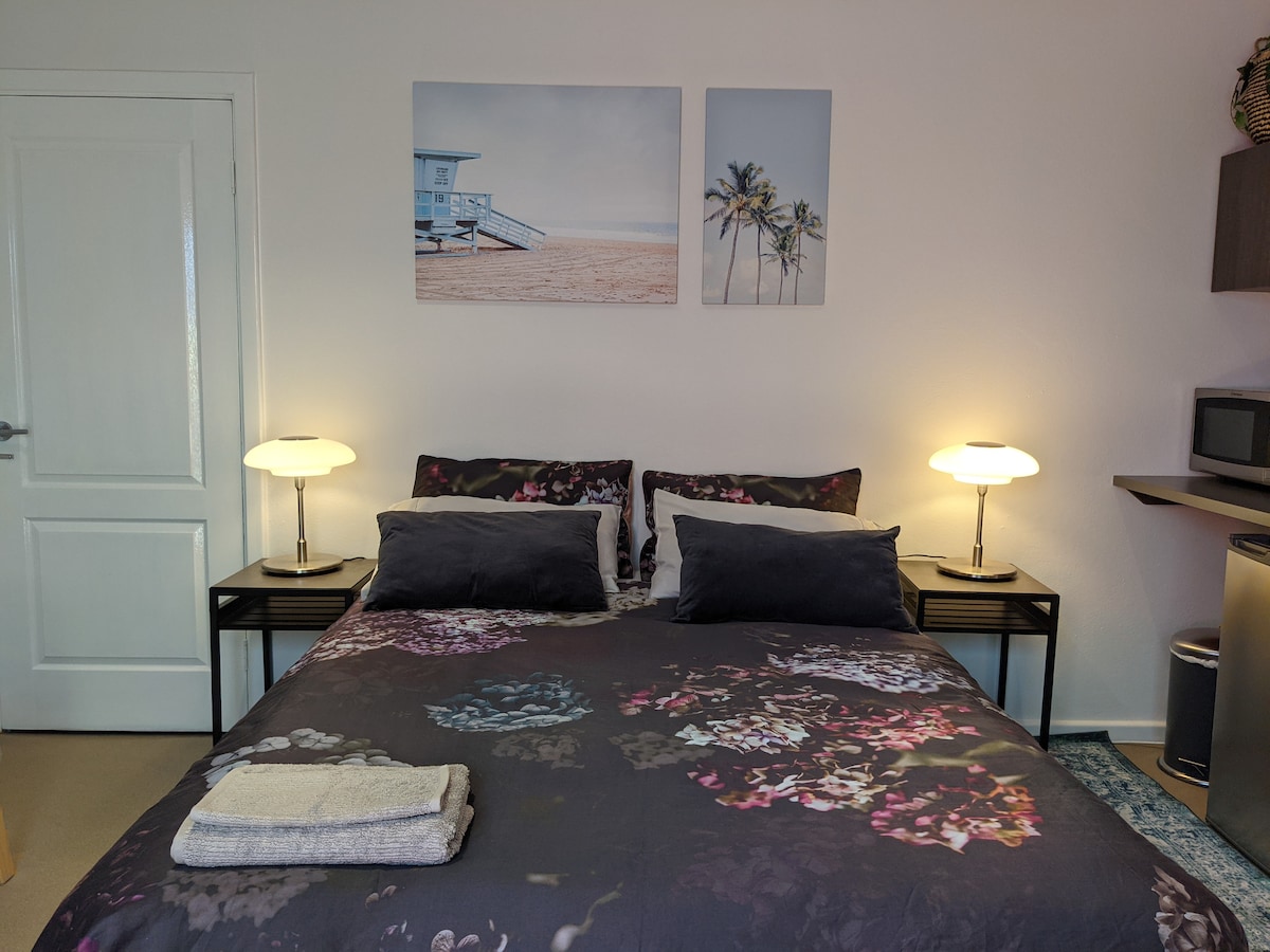 Take it easy at this unique and tranquil getaway. Guests have their own entrance to the downstairs Studio and your hosts live on the premises above ( You may hear the occasional footsteps !) Close to the bus and train or a 12 minute walk to the beach. Shared access to a beautiful garden where you can enjoy your morning coffee. An abundance of shops cafes and restaurants are within walking distance. Both the Regis Aged Care facility and the Guildhall Wedding venue are a few short minutes away.