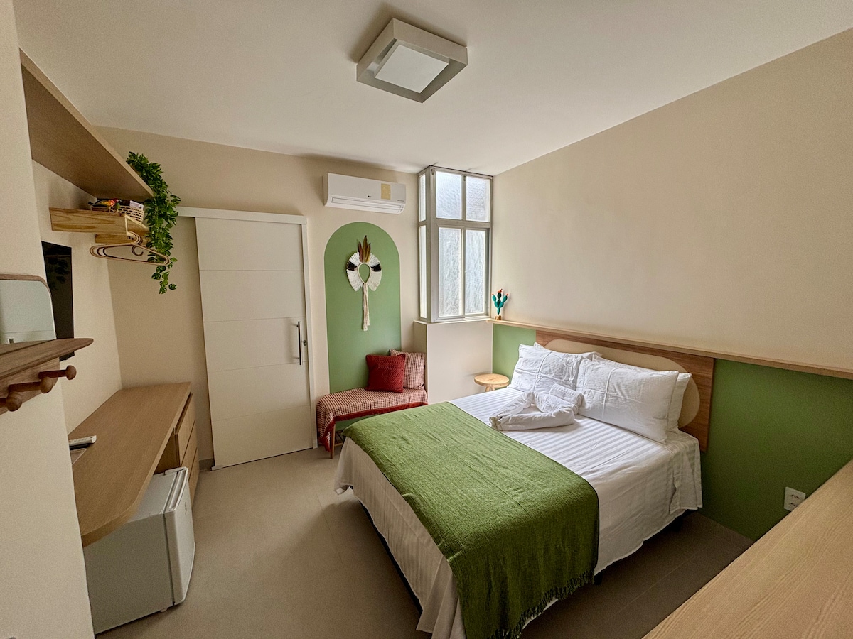 Apartamento-estúdio aconchegante situado na Ponta Verde, bairro nobre de Maceió. Localizado à 300m da praia, 650m da feirinha de artesanato da Pajuçara, 1,8km das piscinas naturais de Maceió e próximo a bares, restaurantes, supermercados e shoppings, está no coração de Maceió. O estúdio inclui Smart TV, wifi e banheiro privativo com chuveiro, secador de cabelo e ferro elétrico, enquanto a cozinha tem micro-ondas, geladeira, fogão, cafeteira ,sanduicheira, panelas,pratos, xícaras, taças vinho.