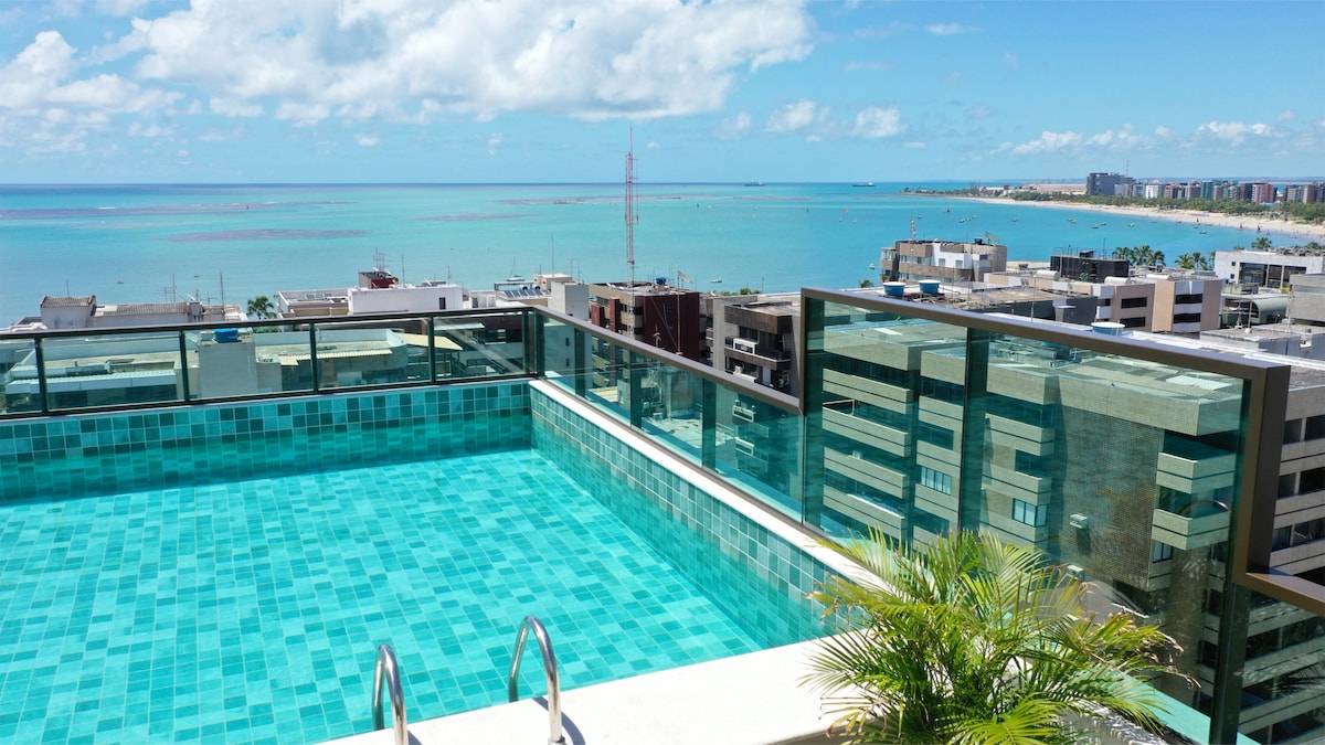 Apartamento totalmente equipado, com muito conforto e privacidade, vista para o mar da janela, no melhor e mais completo bairro de Maceió. Ar-condicionado na sala e no quarto, cama de casal, sofá-cama confortável para até duas pessoas. Cozinha completa com geladeira e fogão e área de lazer na cobertura com piscina e garagem privativa ampla e coberta. Próximo a ótimos restaurantes, bancos e supermercados e o melhor, praticamente à beira-mar da paradisíaca praia de Ponta Verde.