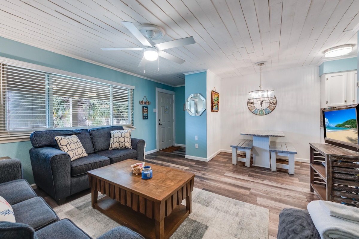 Our unit is ground level and shares only one wall with neighbors, it's brick, so you don't hear them at all! Recently updated and remodeled with modern amenities and precious decor! 2 bedrooms and 2 full baths! It sleeps 8 comfortably. We are located in El Cortez Villas off of HWY 361 a short distance from the first beach access road, or you can use the boardwalk and walk or drive your golf cart. Washer/dryer in unit. We have 2 patios, and the complex has 2 pools. Wifi, cable and ROKU-enable