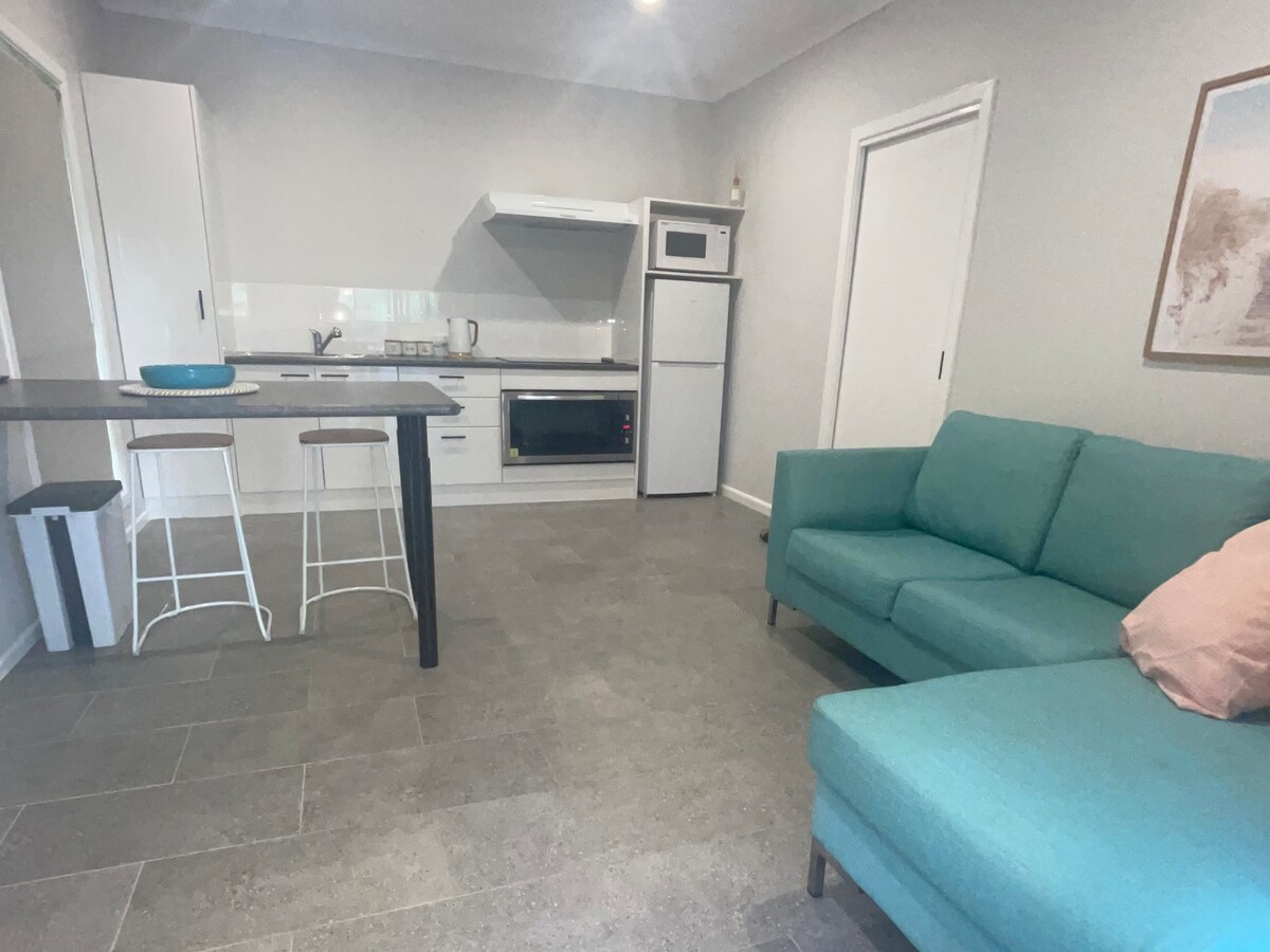Cute couples retreat, pet friendly, for an overnight stopover or a minimalist staycation. The self-contained, private guesthouse features a bright lounge area (with kitchenette), opening up to a timber deck for relaxing afternoons watching the sunset; a fully functional bathroom with washing machine and dryer; and a bedroom bathed in morning sunlight with an enclosed courtyard for doggo. 🐾