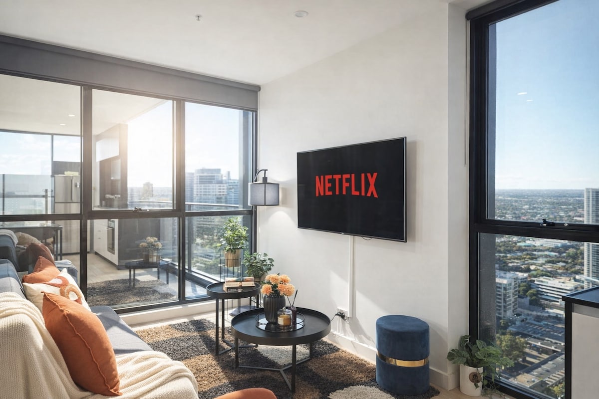 Step into a stylish Southbank retreat where moody modern design meets breathtaking views. From every room, take in uninterrupted panoramas of Melbourne’s skyline and harbour, creating the perfect backdrop for your stay. Rich tones and sleek finishes set the scene for a space that’s as sophisticated as it is comfortable, an elevated city escape that feels effortlessly welcoming. Live the city. Love the stay. BnI Stays.