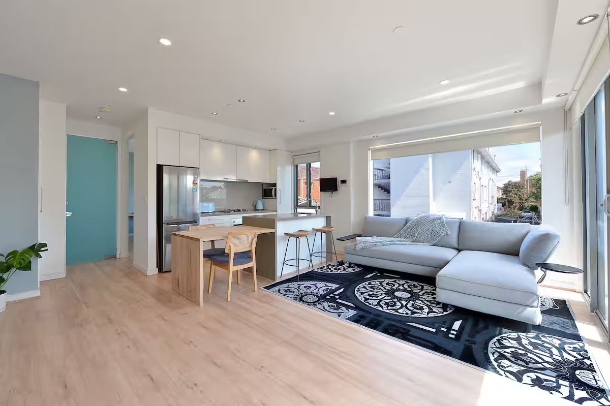 Peaceful loft‑style retreat in the heart of Albert Park. Large open‑plan space with polished floors, vintage charm and modern comforts. Relax in the king‑sized brass bed or unwind on leather sofas. Enjoy Wi‑Fi, TV including Netflix, air‑con, and a compact kitchenette. Private guests-only entrance. Unrestricted on-street parking using host's permit Parks, beach, and local dining all within a short stroll and a tram stop to Melbourne’s CBD only 70m away.