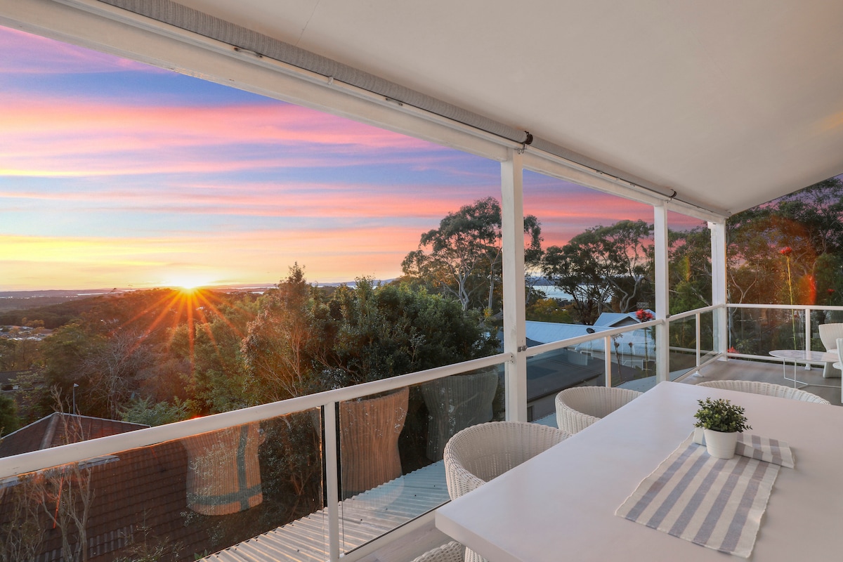 LUXE HOLIDAY ACCOM | Pet Friendly! The perfect getaway for a couples retreat, with friends, or an enjoyable holiday for the whole family. A 2 bed, 2 bath, luxury beachside escape in Corlette, Port Stephens. Only 100m from the beautiful Bagnalls Beach. Beautifully designed & furnished home with water glimpses.