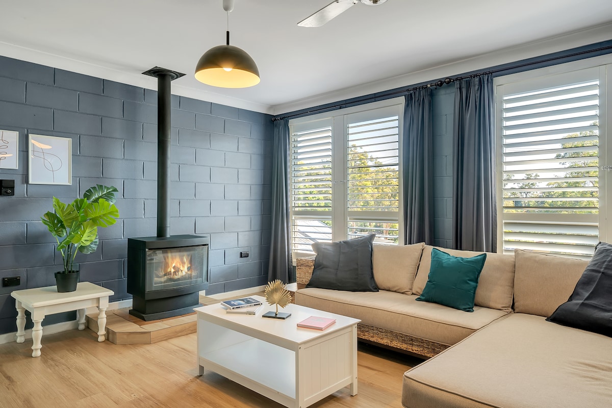 Walk 3 mins to Bagnalls off leash dog beach, 7 mins to child friendly Dutchmans beach & 18 mins to town via coastal path (15 mins via Government Rd). House 🛌 2 Queen & 1 Double 📶 Telstra WiFi 🆒️ AC & Heating 🃏 Games & Books 🔥 BBQ & Firepit 🛌 Linen & bath towels 🧴 Toiletries 🐶 Dogs welcome (byo bed) 👩🍳 Slow cooker, airfryer, coffee machine (byo granules) 👶 Cot, High Chair 🚗 Free parking for 2 cars onsite dutchies_nelsonbay