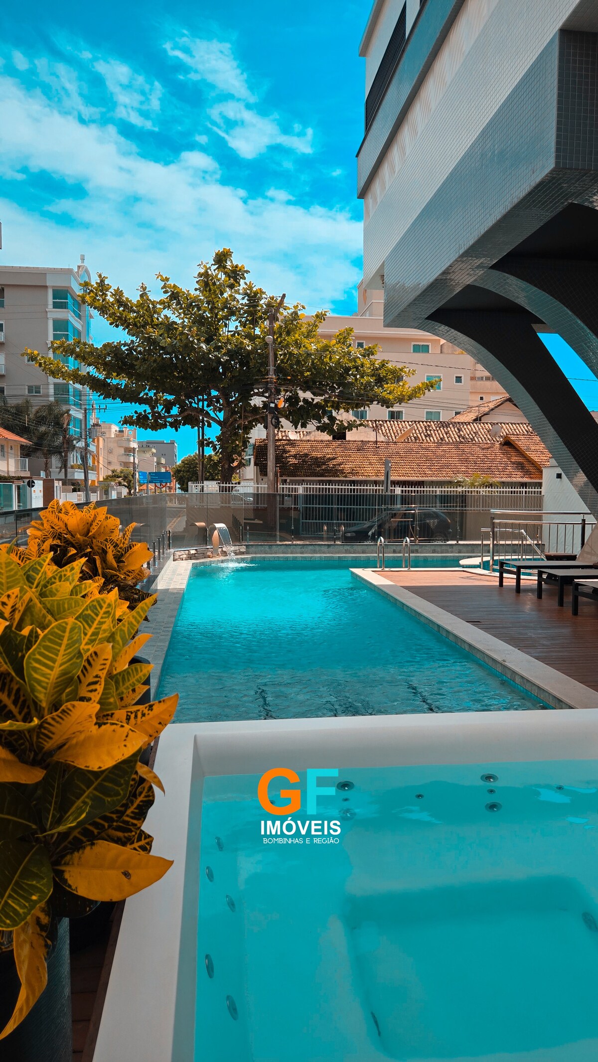 Apartamento em Porto Belo com Piscina e Jacuzzi. Possui 2 quartos, ampla sala integrada à cozinha, churrasqueira privativa e sacada para relaxar apreciando a paisagem. Próximo a mercados, restaurantes, pontos turísticos e a 6 minutos de carro da praia.