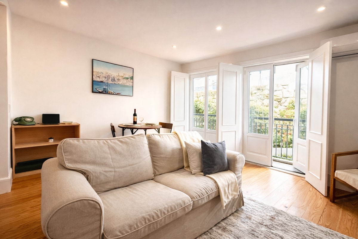 Imagine sunlight streaming into your spacious living room as you open the doors directly onto a balcony, overlooking the lush greenery below. Located in Porto’s iconic Miguel Bombarda Arts District, this spacious home blends central convenience with quiet outdoor peace. Enjoy slow mornings in the garden with your pet or explore the local galleries just steps away. -> Ready for a peaceful escape? Book now or message us to learn more! More details below ⬇️