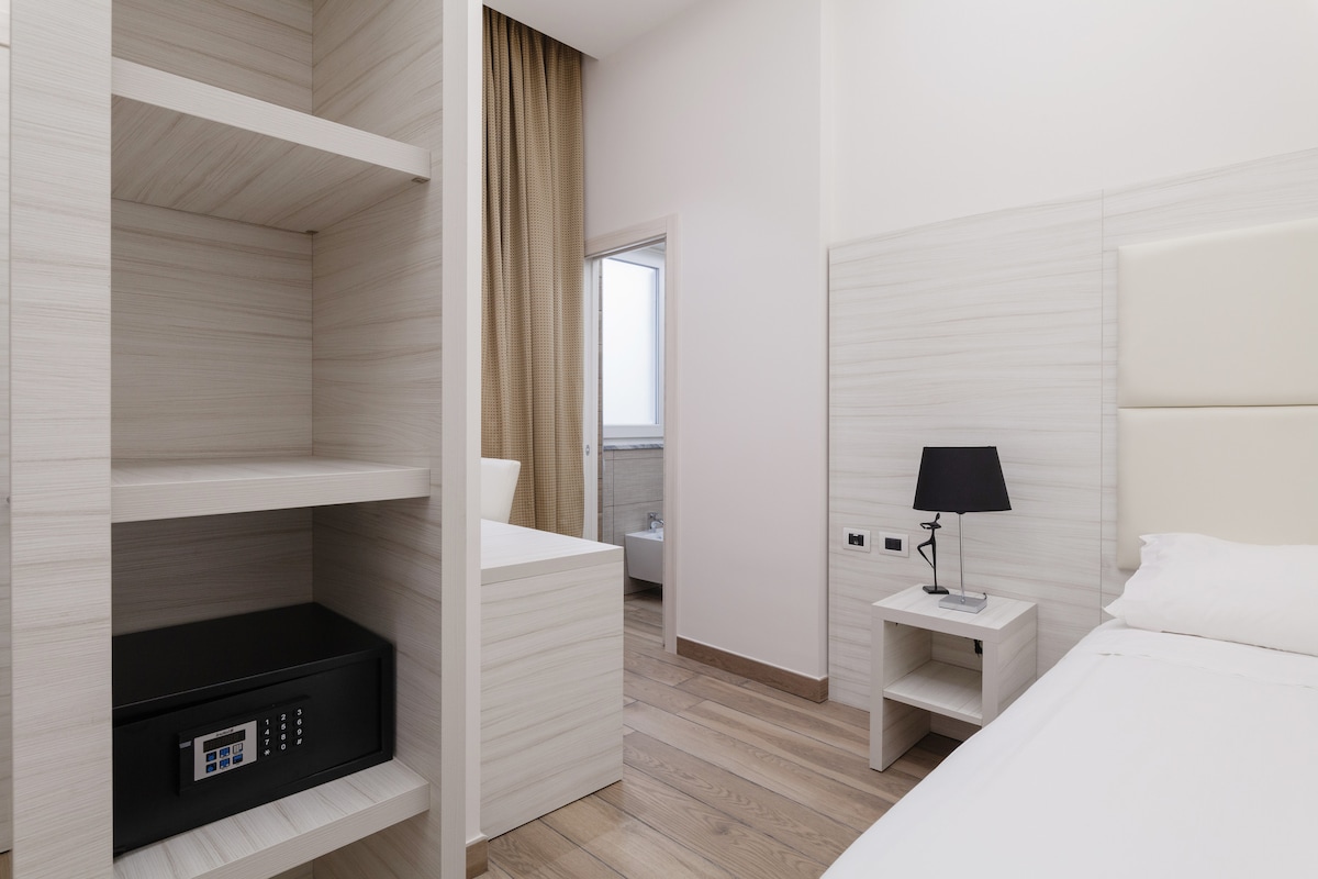 Welcome to Albergo Pompei Valley, a boutique hotel designed to offer luxury, comfort, and an unforgettable experience. Our Deluxe Room with Balcony is perfect for those seeking a refined and cozy atmosphere, just 1.5 km from the city center and the Amphitheater Gate of the Pompeii Ruins. The elegant furnishings, exclusive amenities, and attention to detail will make your stay truly special.