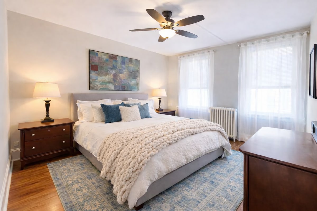 Step into our thoughtfully designed 2BR/2BA retreat in historic Anacostia, where hand-selected African art meets refined comfort. Entertain in a chef-caliber kitchen, unwind on the serene private deck, and enjoy hotel-level details throughout. Featuring a private entrance, secure parking, plush queen beds, blazing-fast Wi-Fi, smart TV, washer/dryer, and climate control. A 10-minute walk to Metro, museums, and Capital One Arena. Pets welcome. We look forward to hosting you.