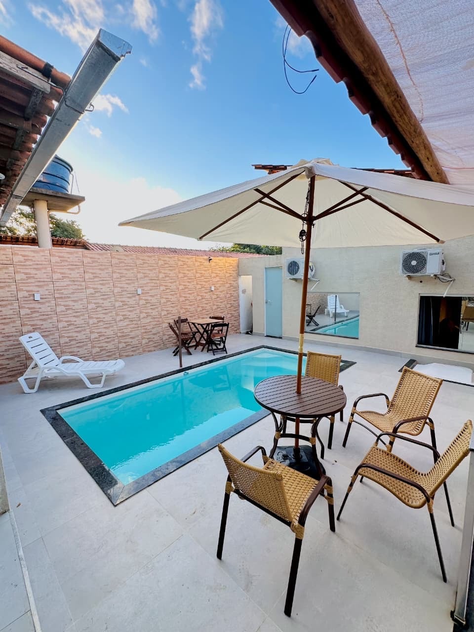 Linda e aconchegante casa com piscina e ampla área de lazer com varanda, churrasqueira,ducha lavabo a 50 metros linda praia.tv, wi-fi Casa com 2 quarto um e suite,contendo duas cama de casal e dois beliche, 2 ventilador,banheiro social, cozinha completa,1 geladeira,1 freezer vertical