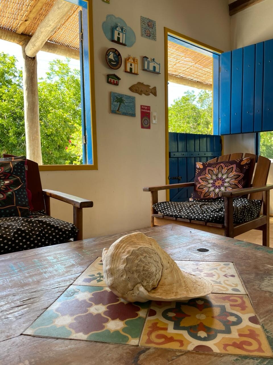 Chalé Encanto Corumbau: Natureza. Privacidade. Praia a poucos passos. Seu refúgio perfeito em Corumbau, onde você pode desacelerar, ouvir o vento nas árvores, o canto dos pássaros e caminhar até a praia paradisíaca Santa Maria em apenas 5 minutos. Chalé aconchegante e acolhedor, pensado para que você se sinta em casa e abraçado pela natureza. Estamos a 1 km do centrinho, com mercadinhos e restaurantes, e a 5 km da Ponta do Corumbau, um dos cartões postais da região.