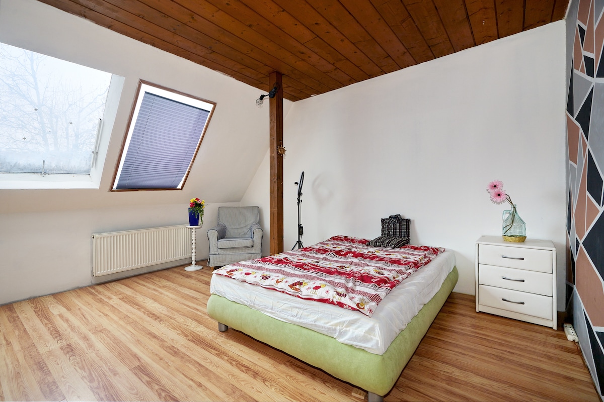 Dej si nohy na stůl a odpočiň si v tomto klidném, stylovém ubytování, které je jen 100 m od lesa, ale zároveň v blízkosti pulzující Prahy. Domek je ideální pro dvě osoby nebo rodiče s malým dítětem, kteří si chtějí po rušném dni sednout večer v klidu na zahradu anebo rozdělat oheň v krbových kamnech. Manželská postel má velmi kvalitní matraci v jednom kuse, takže není problém přespat i s dítětem. Sofa je rozkládací a umožňuje přespání další osoby. Satelit a rychlá wifi jsou samozřejmostí.