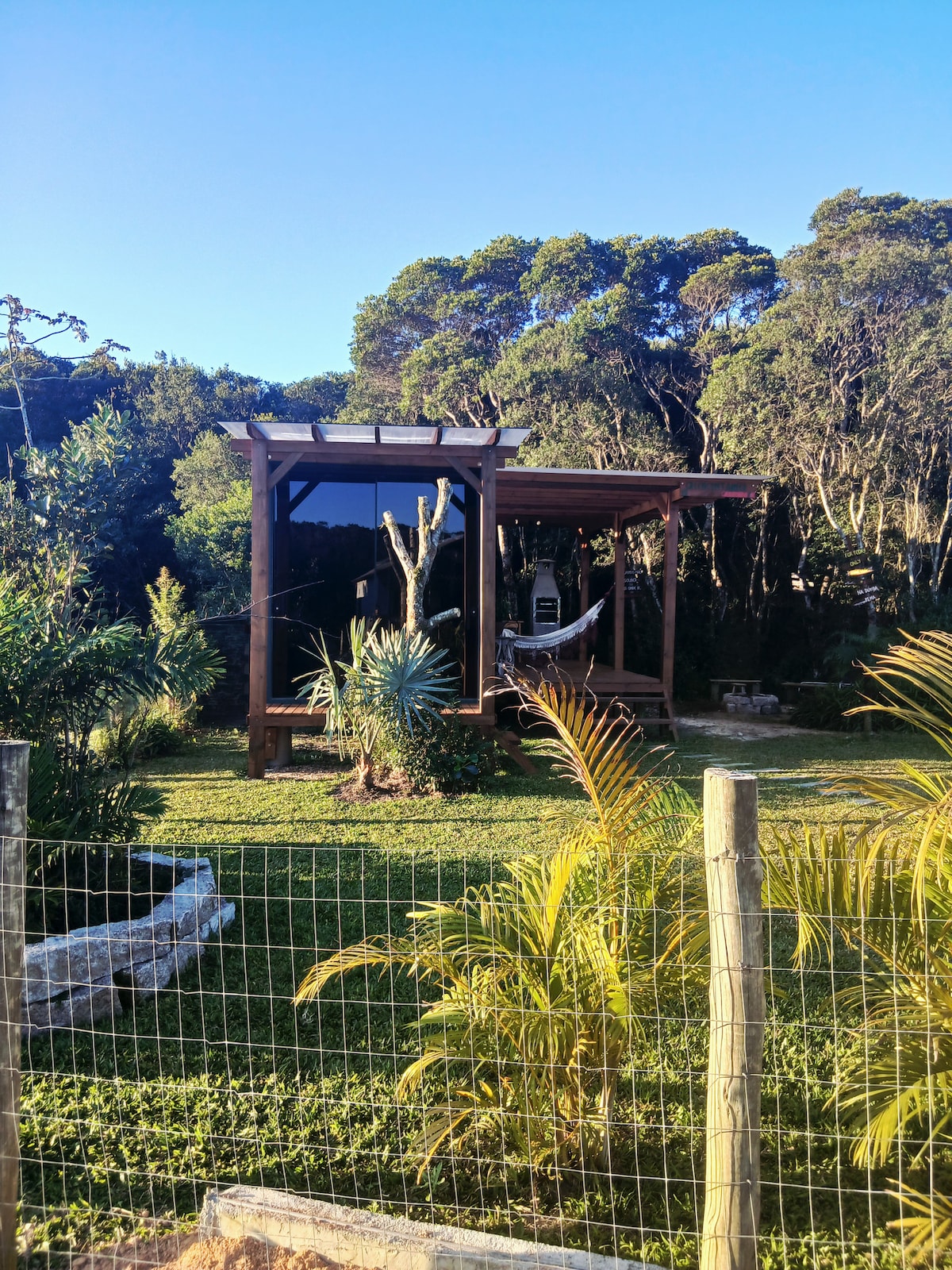 Lugar tranquilo, beira lagoa e próximo da praia da ferrugem, em área de preservação. Refúgio com clima de lagoa e próxima ao mar . Uma casa conceito Tiny house, minimalista com muito conforto. Com mínimo impacto ambiental e preservação do meio ambiente, Espaço pensado para desfrutar dias de descanso na praia com muita qualidade. Vivencie essa experiência de liberdade. Cozinha completa com fogão, microondas, mini geladeira e utensílios. Sofá, Tv tela plana e NETFLIX instalada. Perfeito para casal