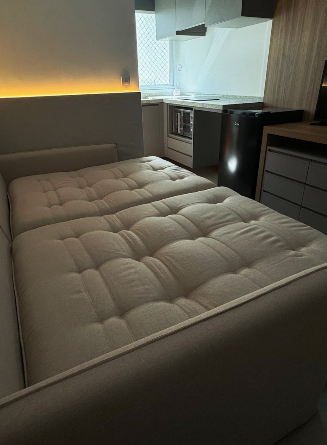 Hospede-se neste lindo flat privativo recém reformado que possui todo conforto necessário para sua viagem a negócios ou lazer em Vitória. Localizado de frente a Praia de Camburi, possui fácil acesso ao aeroporto de Vitória (3min) Oferecendo maior segurança, você terá a disposição a recepção 24h e terá acesso ao clube com piscinas infantis e adulto, sala de jogos, bar e petiscaria e diversas quadras. Possui arquitetura assinada oferecendo conforto e elegância com serviços de hotel.