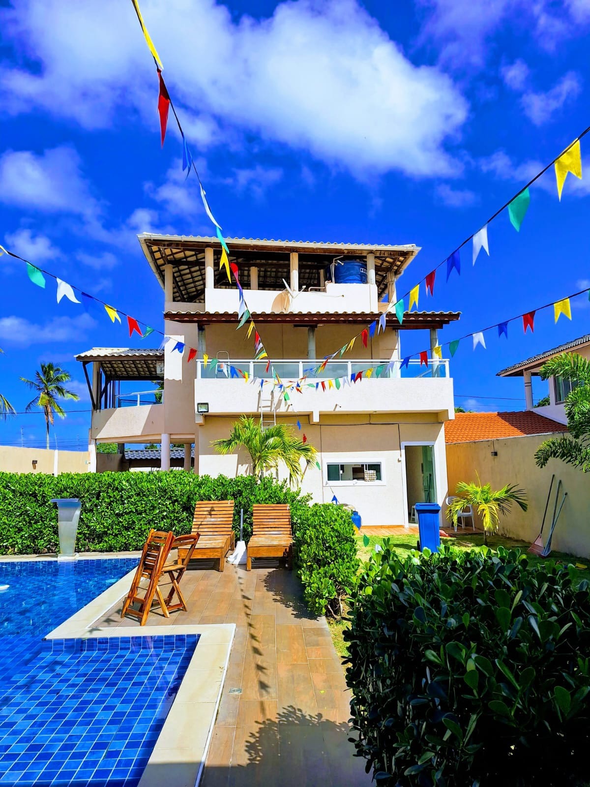 A casa está localizada no condomínio piscinas naturais, Jacarandas, n.318. Condomínio beira mar, com total segurança e infra estrutura. Com uma arquitetura diferenciada, a casa é totalmente integrada, inclusive com a natureza. O condomínio tem clube, academia, quadra de tênis, parquinho infantil. A casa está há 150 mts da praia. Para maior comodidade, o condomínio disponibiliza uma van executiva que leva e trás até a vila, nos finais de semana até a meia noite. Esperamos vocês.