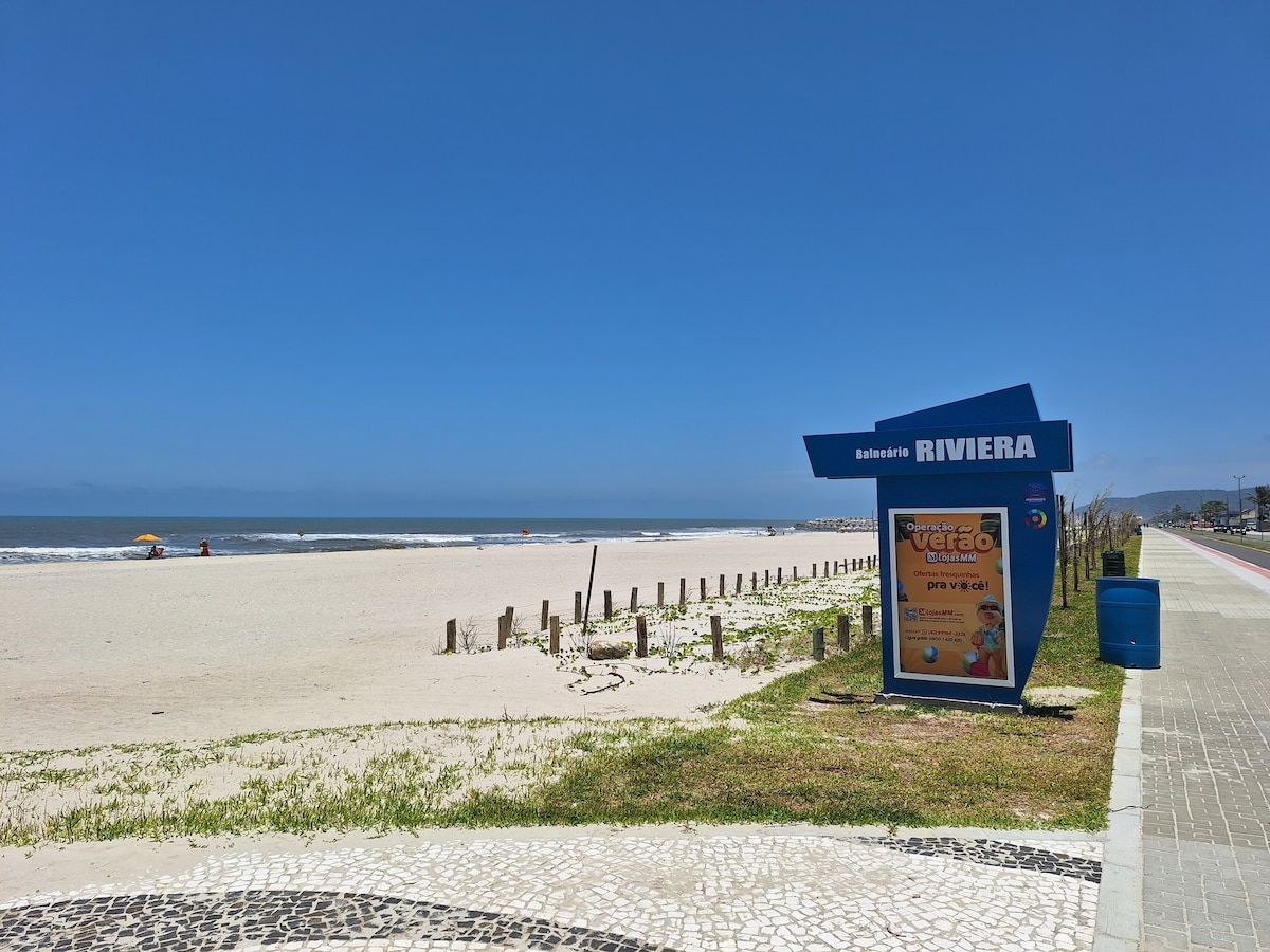 Balneário Riviera, apenas 1 quadra do mar, orla toda revitalizada. Relaxe com toda a família nesta acomodação tranquila. Sala e cozinha conceito aberto, banheiros com box, quartos aconchegantes, rua tranquila, fogão, geladeira, máquina de lavar, ventiladores de teto em todos os cômodos, ar condicionado nos quartos, varanda, rede, garagem. Próximo de mercado, pastelaria, distribuidora de bebidas. Praia com toda infraestrutura. Utensílios domésticos, liquidificador, sanduícheira.