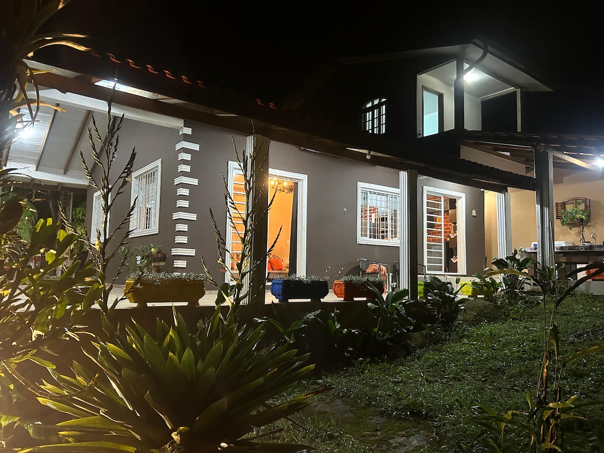 Leve a família e amigos a este ótimo lugar com espaço para se divertir com privacidade! No meio da Mata Atlântica, nossa Casa de Campo oferece 6 quartos confortáveis, banheiros e um espaço gourmet que acolhe todos. Ficamos há 15 km do centro de Antonina. Piscina, açude, caminho de palmeiras e lugar para fogueira. Espaço rústico para jogar vôlei, casinha para brincar, local de oração, jardins e redário. Não fornecemos roupa de cama, toalhas e travesseiros. Nosso cantinho compartilhado.
