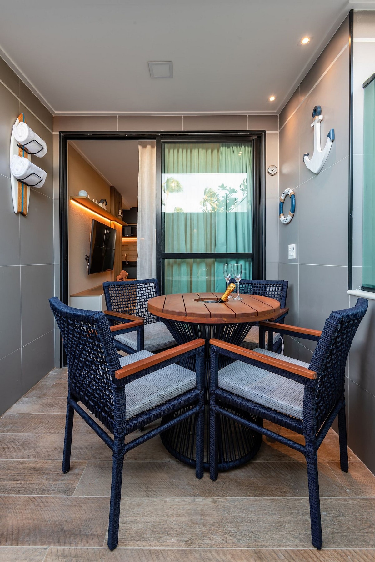 LUXO, com incrível decoração e muito conforto! Nosso Lindo Apartamento entrega tudo o que há de melhor em Porto de Galinhas, muito conforto (Cama confortável, sofá-cama de excelente qualidade), decoração moderna, itens de primeira, linda vista da varanda e LOCALIZAÇÃO PERFEITA (bem no centrinho de Porto de Galinhas). Cozinha Equipada: Prepare suas refeições com facilidade em uma cozinha moderna, equipada com liquidificador, sanduicheira, Microondas, conjunto de panelas, Utensílios completos estão à disposição para garantir uma experiência culinária excelente. Sala de Estar com Sofá-Cama: Espaço adicional para relaxar ou acomodar 2 hóspedes extras com todo o conforto com nosso excelente sofá-cama que realmente vira uma cama. Para maior comodidade dos nossos hóspedes temos também: Ferro de passar roupas e secador de cabelos. O Porto Kai não apenas promete, mas entrega uma experiência de hospedagem sem igual, combinando luxo, conforto e praticidade. Reserve sua estadia e prepare-se para momentos inesquecíveis em Porto de Galinhas.