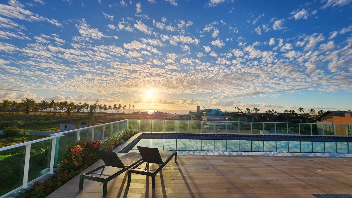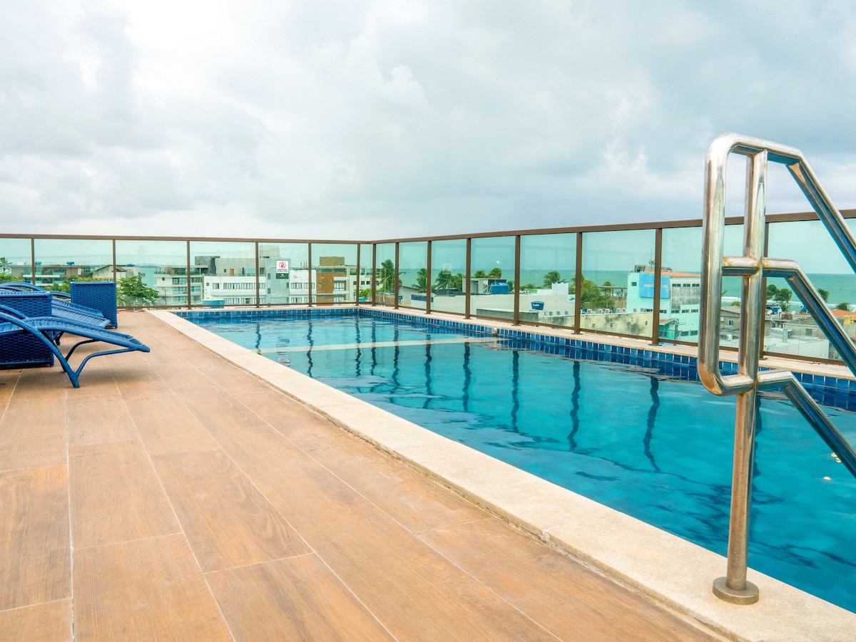 Apartamento com vista para o mar 🌊 No coração de Porto de Galinhas, o Plage du Porto é um condomínio localizado no centrinho e bem frente às piscinas naturais. O condomínio oferece piscina ao ar livre, churrasqueira, parquinho e rooftop com jacuzzi e vista panorâmica de tirar o fôlego. Devido a localização privilegiada, você terá acesso a tudo que precisa sem ter a necessidade de se deslocar de carro. Viva uma experiência única se hospedando em frente às belíssimas piscinas naturais!