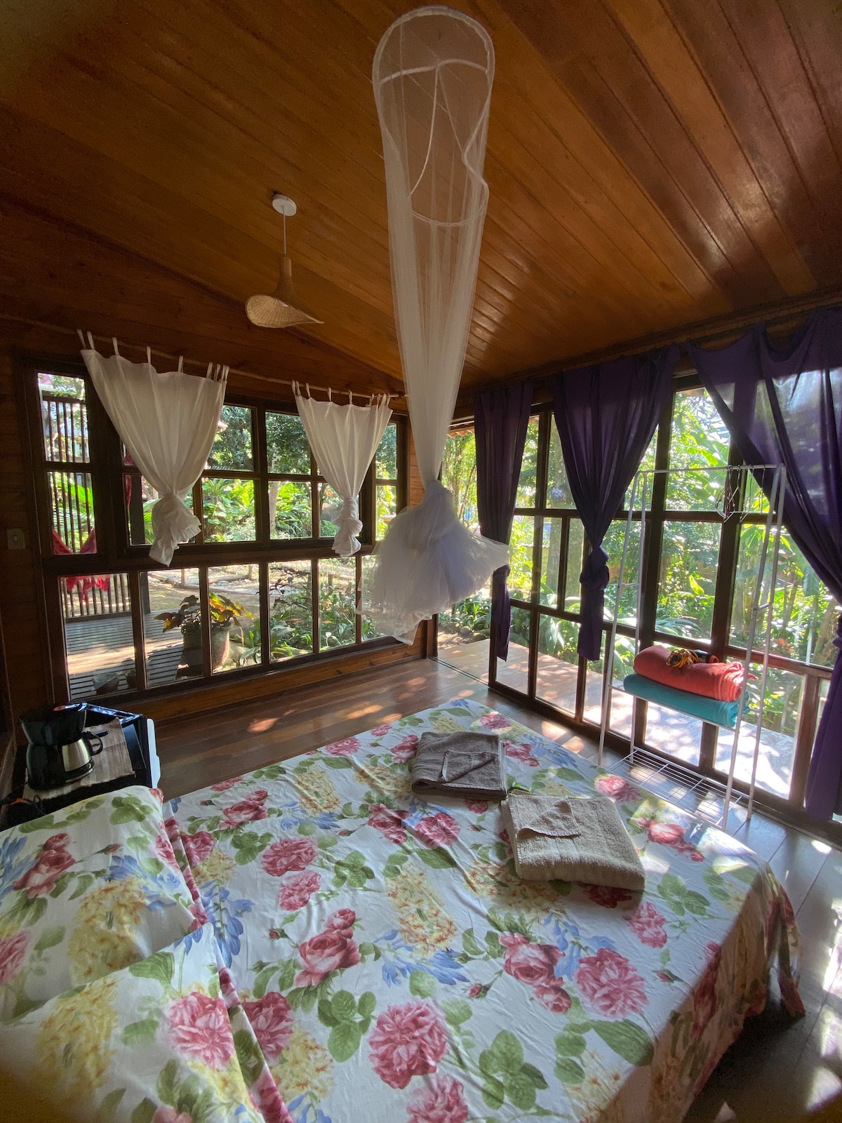 A Cabana da mata não é apenas um aluguel de temporada, é um daqueles lugares que você visita e não esquece. Com uma vista sensacional (Mata Atlântica típica do Brasil). Com grandes janelas que logram conectar o espaço interior com a natureza ao redor, é um local tranquilo e silencioso. Ideal para casais mas caso sejam 3 pessoas, temos um sofá cama na sala.