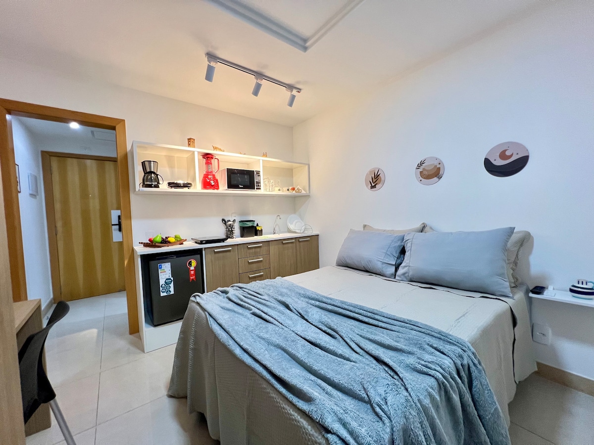 Loft charmoso, moderno e completo. Wi-fi, ar condicionado, Smart TV, geladeira, toalhas, roupa de cama, mini-fogão, forno elétrico, liquidificador, microondas, sanduicheira, cafeteira e todos os utensílios de uma casa, você não precisa trazer nada. Prédio conta com portaria 24h, elevador e conveniência 24h. Localizado na Avenida Presidente Vargas, uma das principais da cidade. 50 metros dos principais meios de transporte (metrõ, VLT e trem). Distância de 10 minutos da rodoviária e aeroporto.