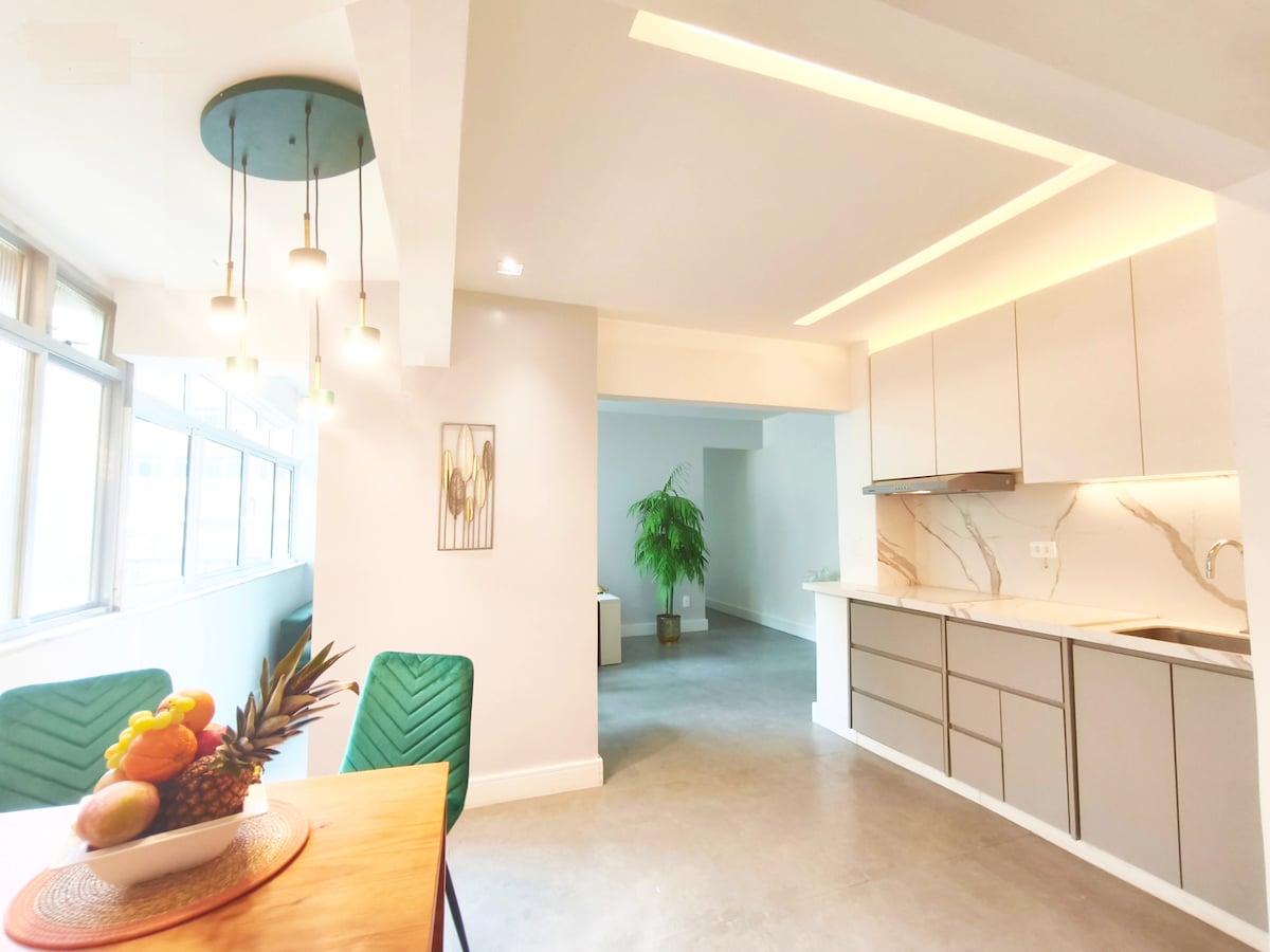 Este Flat tem 2 varandas e fica entre as 3 praias mais famosas do mundo, Posto 6 Copacabana, Arpoador e Ipanema! Um espaço elegante e moderno com garagem privativa, limpeza diária, portaria 24h a 50 metros da Praça General Osório a principal estação Metrô da Zona Sul e da popular Feira Hippie Carioca. Você ainda conta com muitas opções de compras, bares cheios de vida e restaurantes à porta! Aconchegante, feito para você se sentir em casa. todos são muito bem vindos em nossa casa.