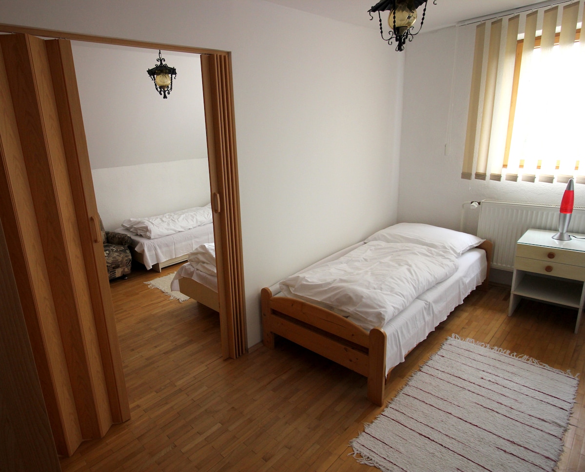 Private double room with free wifi, minibar, table and chair, Tv, shelf and private bathroom. Guests could also use shared kitchen, dayroom with fire-place, or wellness. In every room guests could find „Guestbook“, written also in English, which contains basic information about penzion, services which could be used during the stay and tips on good restaurants, pubs and free-time activities in this region. Extra services like breakfast or wellness is not included in the price.